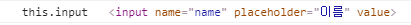 그리고 input 태그에 placeholder, value, onChange 이벤트를 설정하고 이벤트와 handleChange 함수를 연결해줍니다.